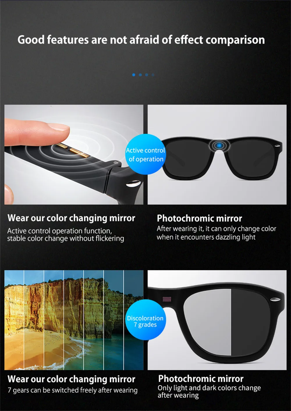 This feature helps reduce glare and brightness while keeping your vision clear. Whether you're driving, enjoying outdoor sports, or working in bright conditions, you can fine-tune the lenses to achieve optimal visibility and comfort