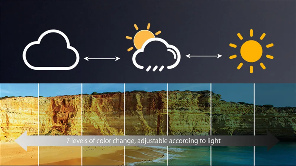 - The smart color-changing technology automatically adjusts the lens tint based on UV light exposure, ensuring consistent visual clarity and protection.